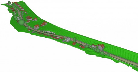 Als Basis für die Modellierung diente die Befahrung und Digitalisierung des Strassenraums durch die iNovitas AG. Die benötigten Punktwolken konnten so direkt aus infra3D bezogen werden. Dank der verbesserten Georeferenzierung erfolgte eine genaue Positionierung der Punktwolke, welche die Grundlage für das Bestandsmodell bildet. Durch die Kombination der Bodenaufnahmen mit ergänzenden Drohnenbildern entstand anschliessend ein flächendeckendes digitales Geländemodell (DGM).