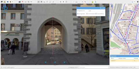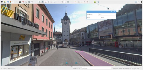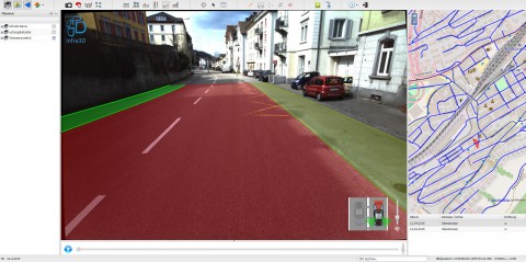 La vue panoramique à 360° avec une précision inégalée vous évite de parcourir le terrain sur place. Ces parcours sont possibles virtuellement via infra3D quand et d'où vous voulez. La saisie des données de base est possible directement à partir du service d'images.